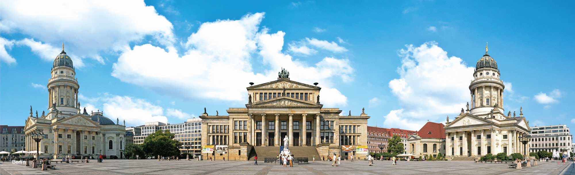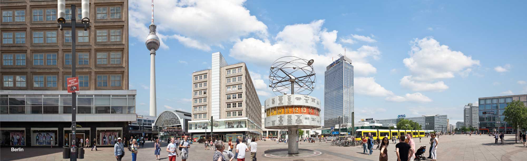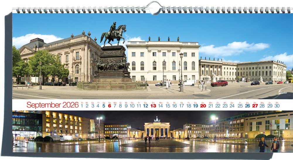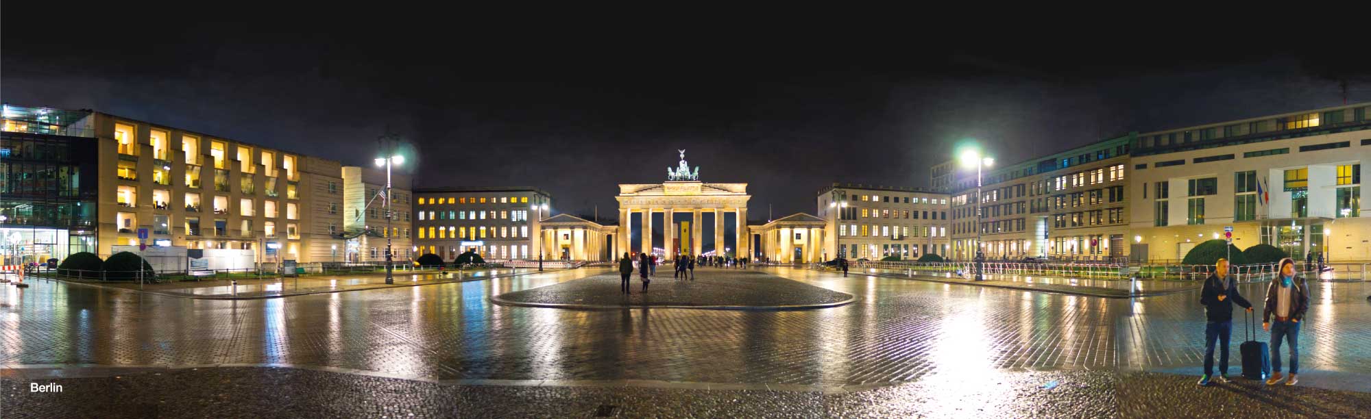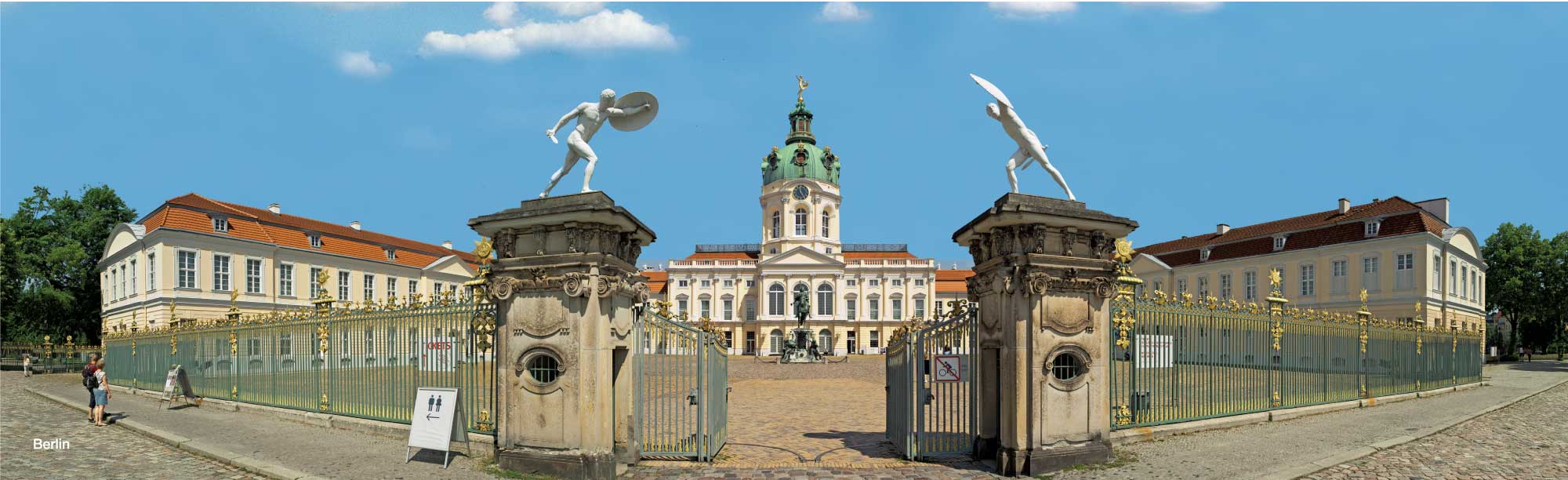 Das Berliner Schloss gilt als ein Hauptwerk des norddeutschen Barocks. Es war ein zentrales und eines der größten Bauwerke Berlins. Als Fluchtpunkt mehrerer Blick- und Straßenachsen prägt es mit seinen Fassaden und seinen Ausmaßen das Stadtbild. Das Panoramafoto von dem wiederaufgebauten Schloss und dem Berliner Dom daneben zeigt den Zusammenhang der baulichen Ensembles. Weitere Panoramen zeigen das Brandenburger Tor, den Alexanderplatz, Schloss Charlottenburg, den Gendarmenmarkt und viele weitere Motive.