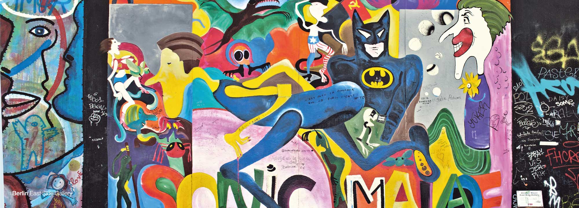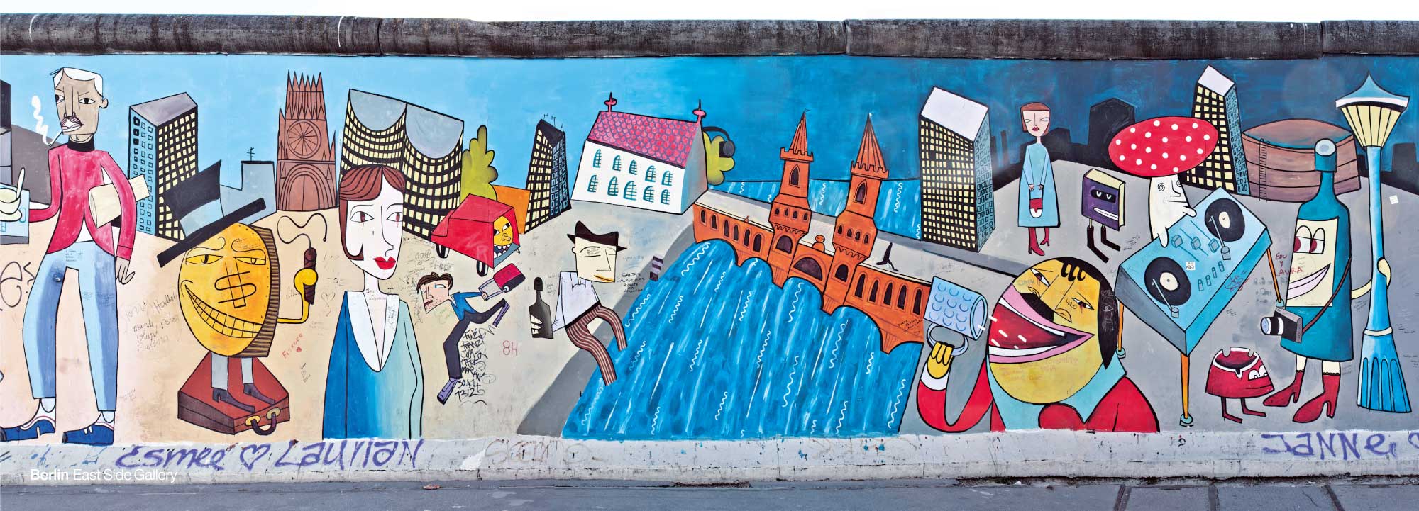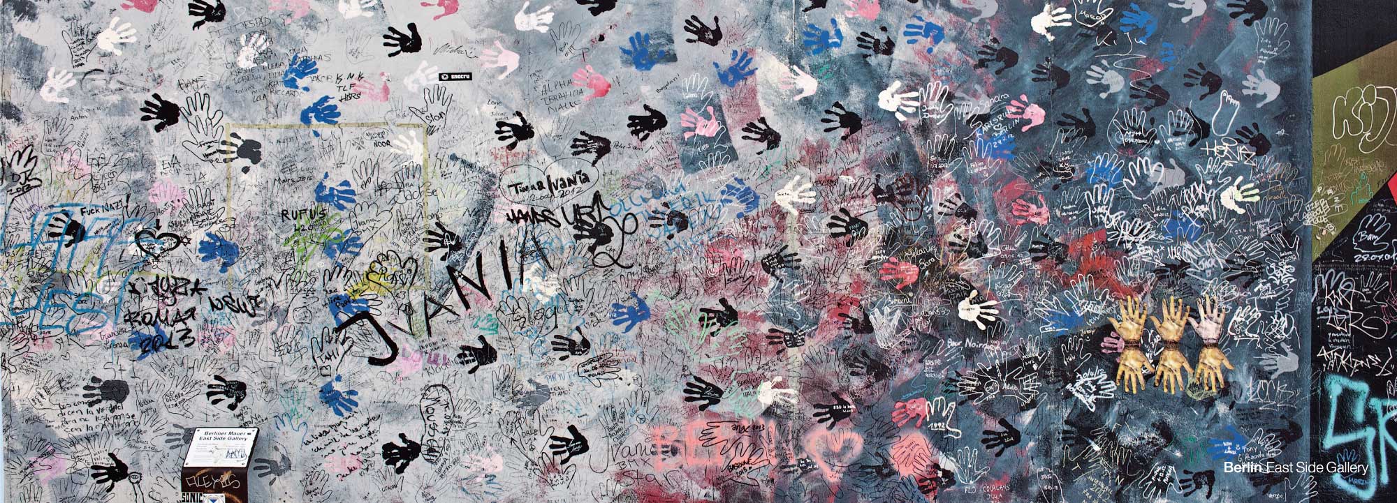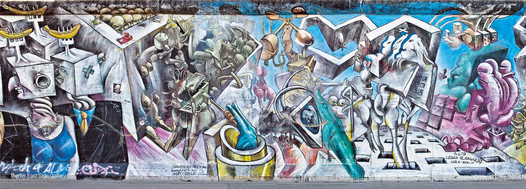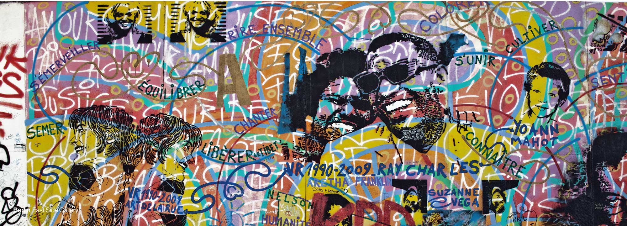 Das Denkmal East Side Gallery in Berlin-Friedrichshain ist eine dauerhafte Open-Air-Galerie auf dem längsten noch erhaltenen Teilstück der Berliner Mauer in der Mühlenstraße zwischen dem Berliner Ostbahnhof und der Oberbaumbrücke entlang der Spree.