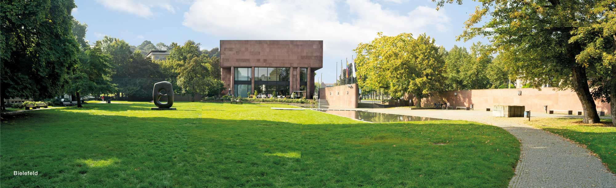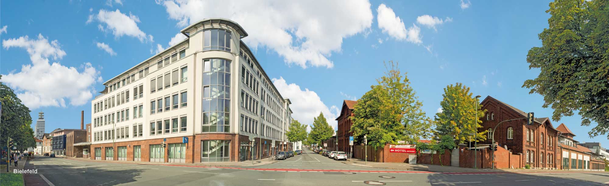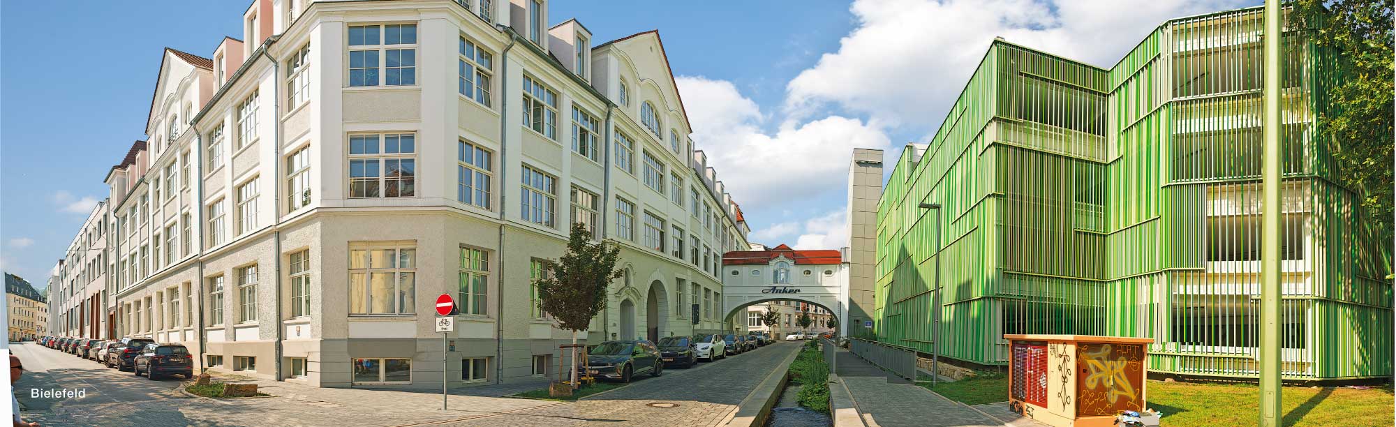 Das Alte Rathaus, das neue Rathaus und das Stadttheater in Bielefeld - das alles zusammen auf einem Panoramabild. Weitere Panoramen zeigen Motive aus Bielefeld, die einen Blickwinkel von mehr als 180 Grad umfassen.