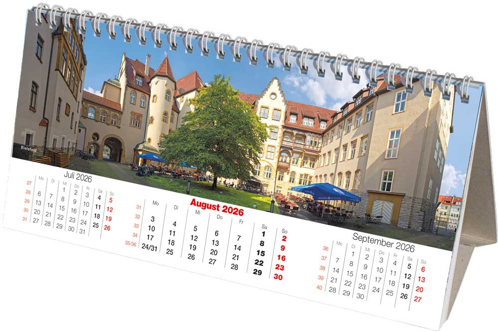 Mit 3-Monatsübersicht. Er passt auf jeden Schreibtisch, ob zu Hause oder im Büro.