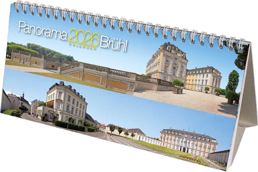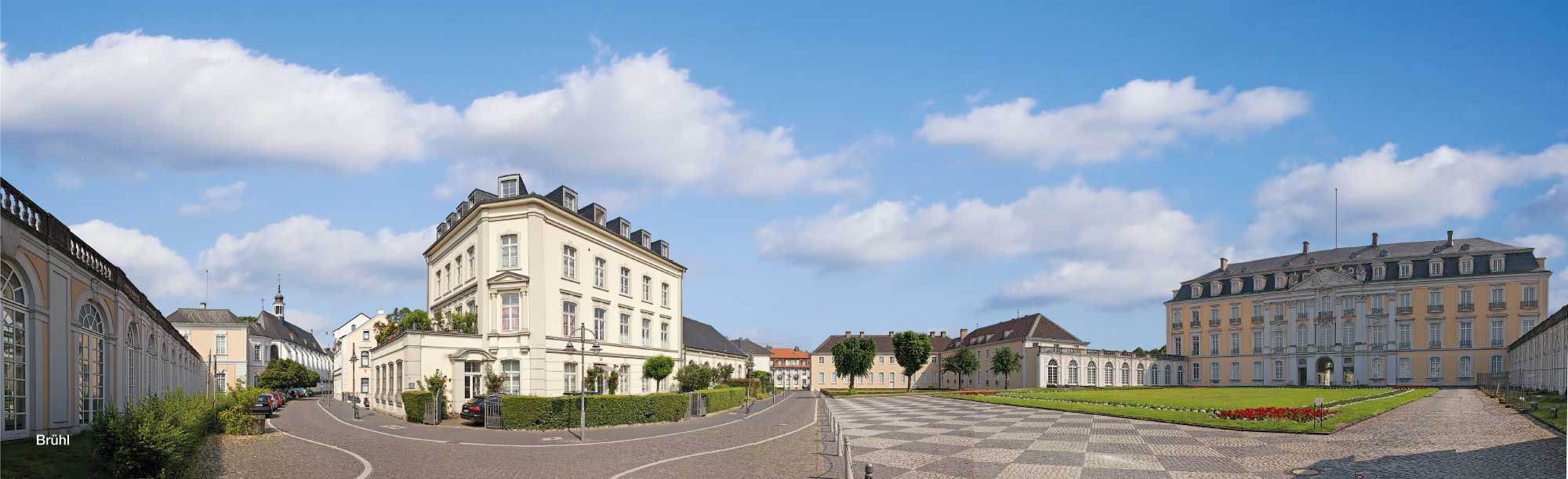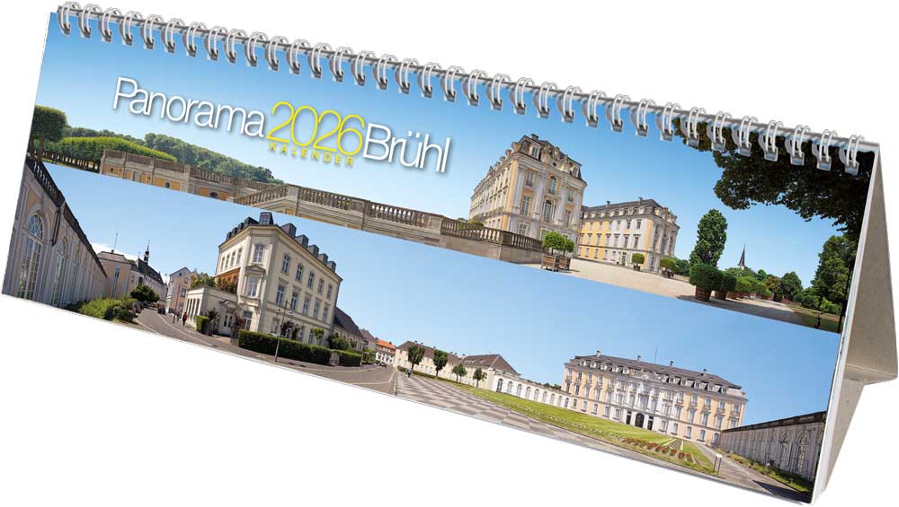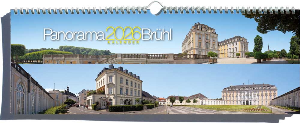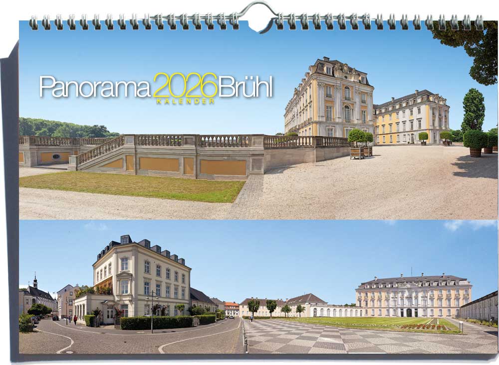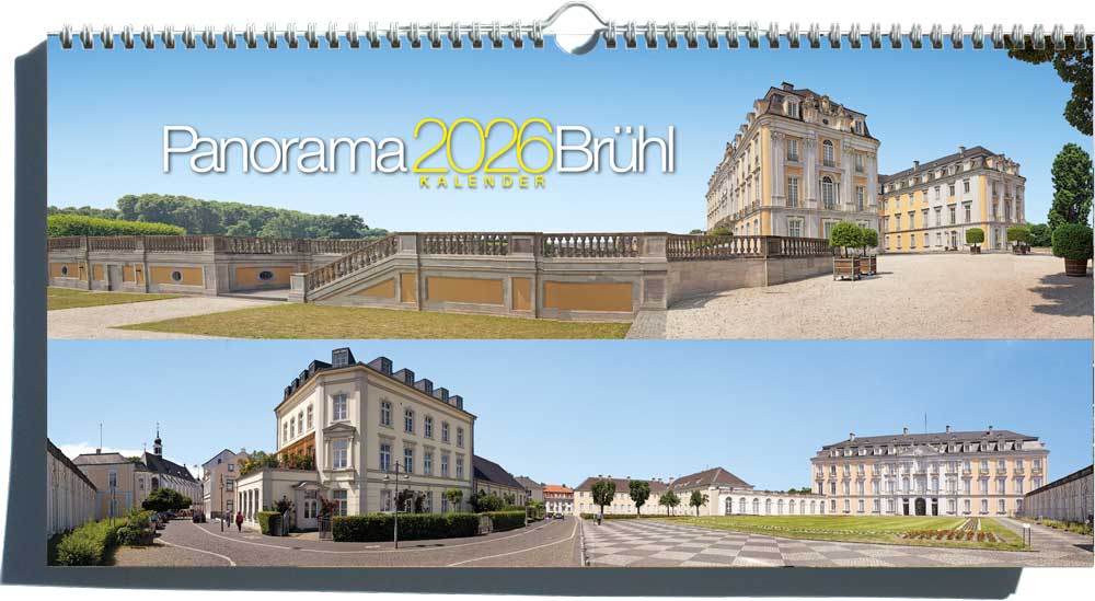 Das Brühler Schloss Augustusburg mit seiner barocken Pracht und dem Schlossgarten sind Motive, die in den Panoramen in ihrer breiten Pracht gezeigt werden. Weitere Motive sind das Jagdschloss Falkenlust, das Max Ernst Museum sowie Motive aus der pittoresken Innenstadt.