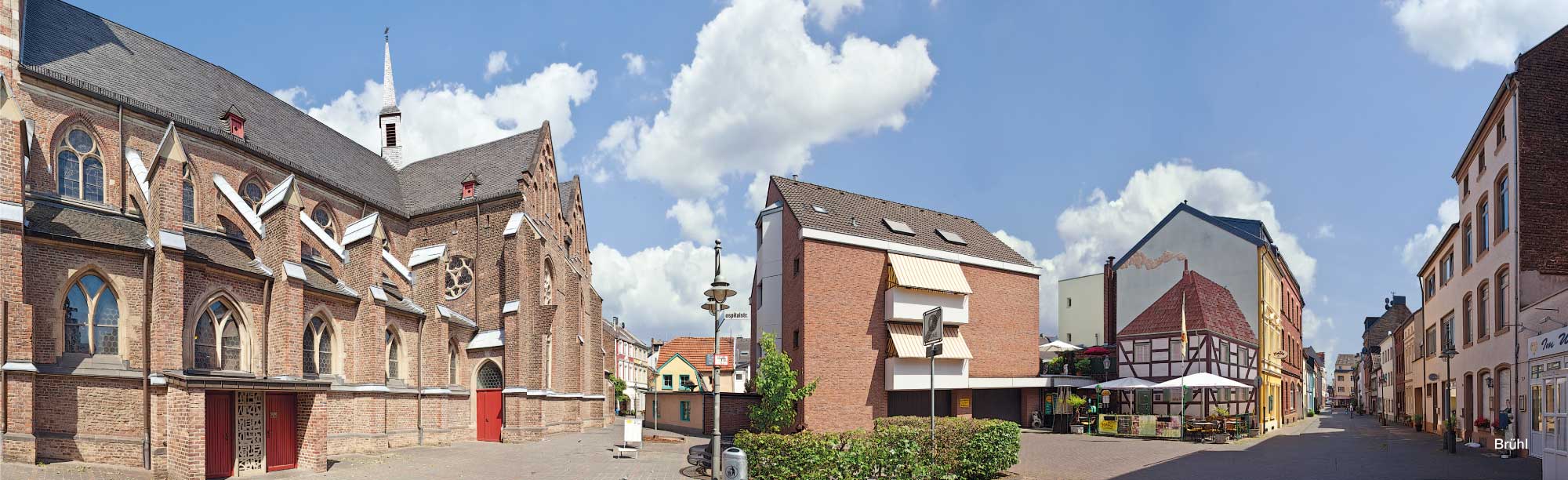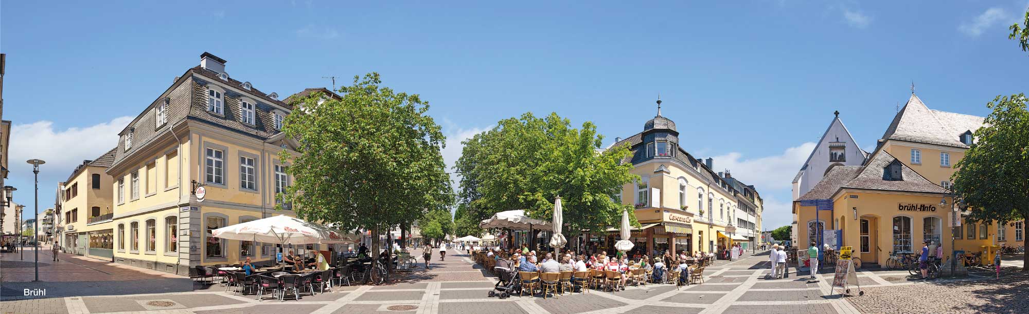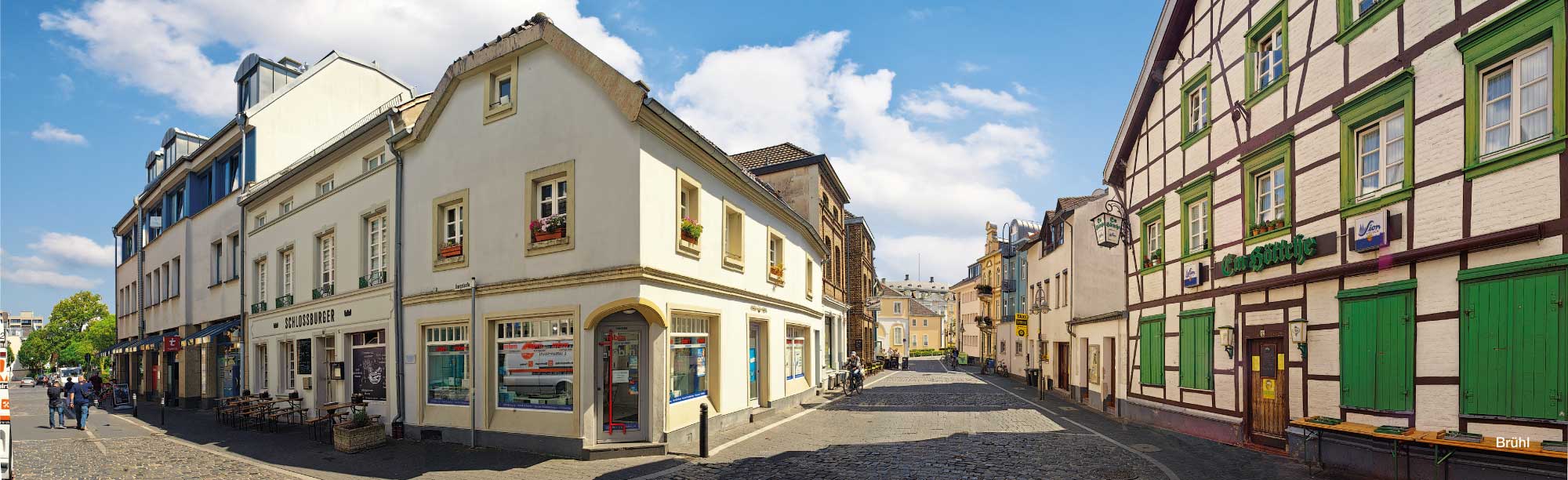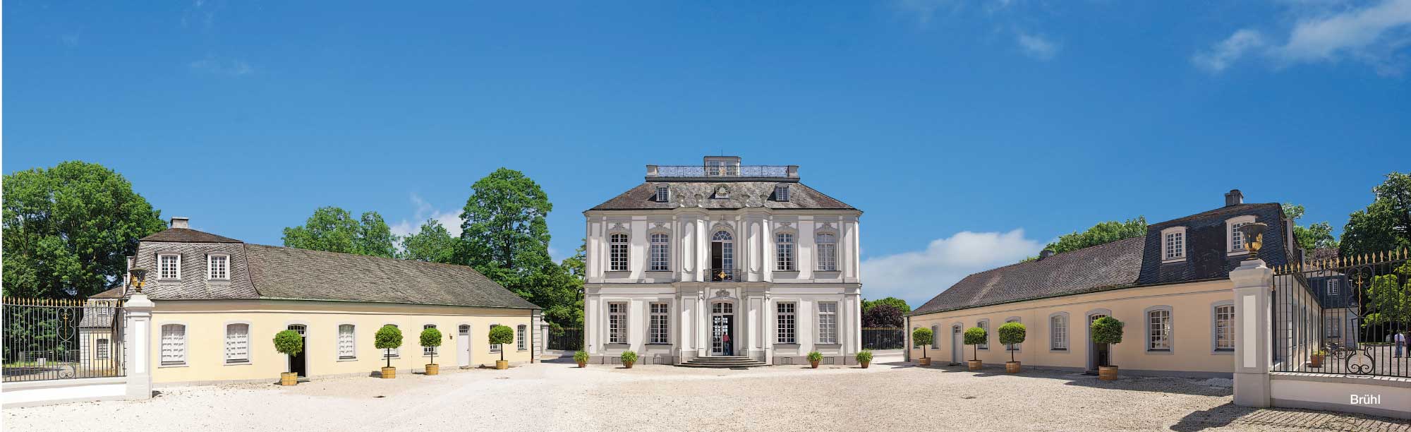 Das Brühler Schloss Augustusburg mit seiner barocken Pracht und dem Schlossgarten sind Motive, die in den Panoramen in ihrer breiten Pracht gezeigt werden. Weitere Motive sind das Jagdschloss Falkenlust, das Max Ernst Museum sowie Motive aus der pittoresken Innenstadt.