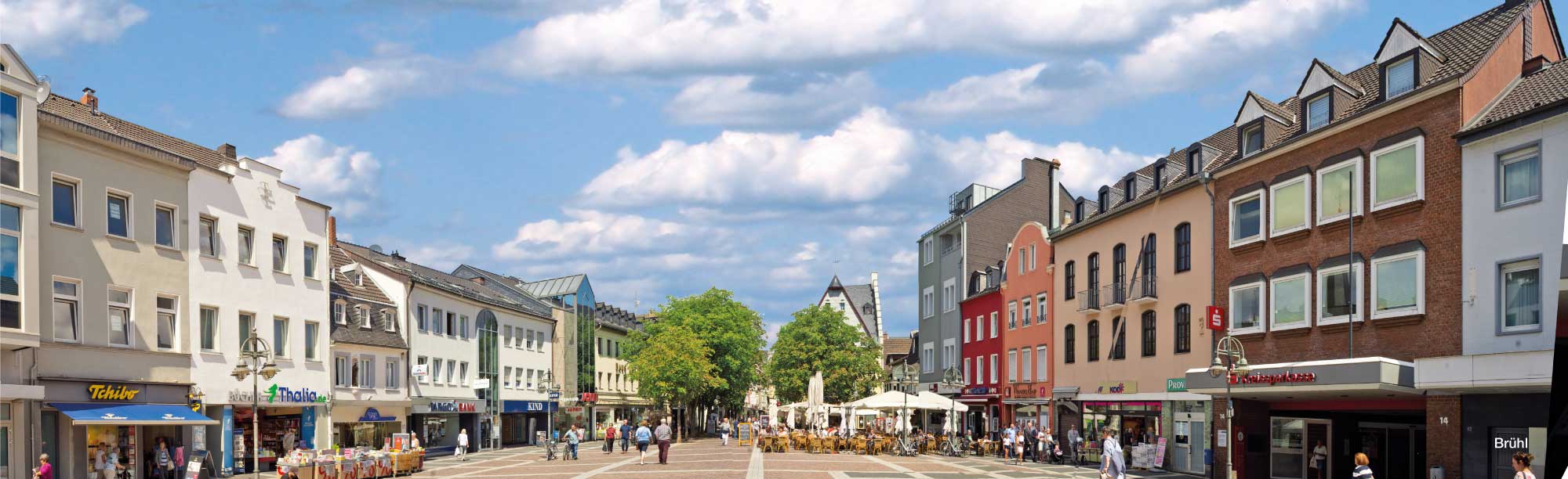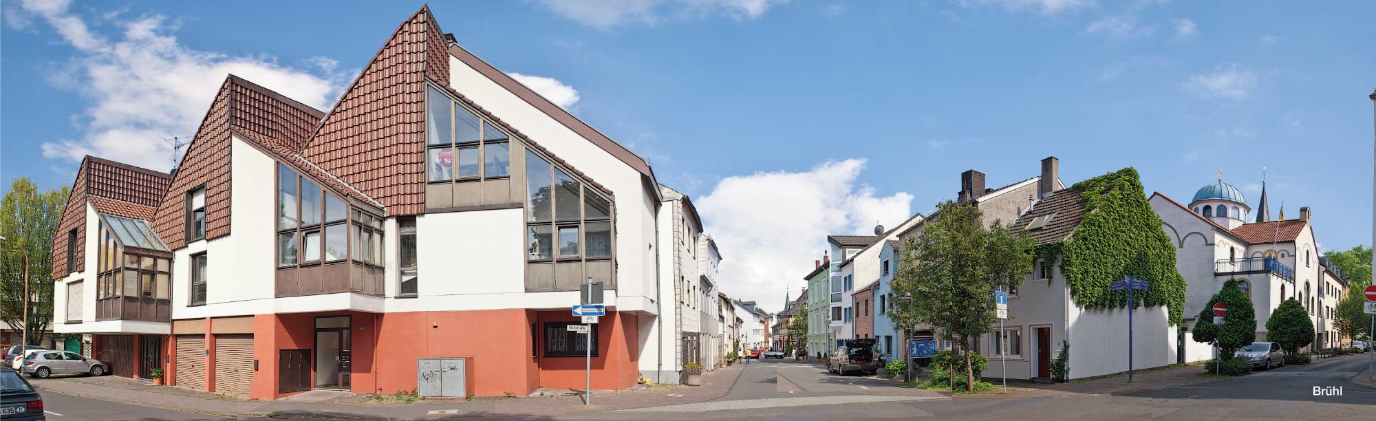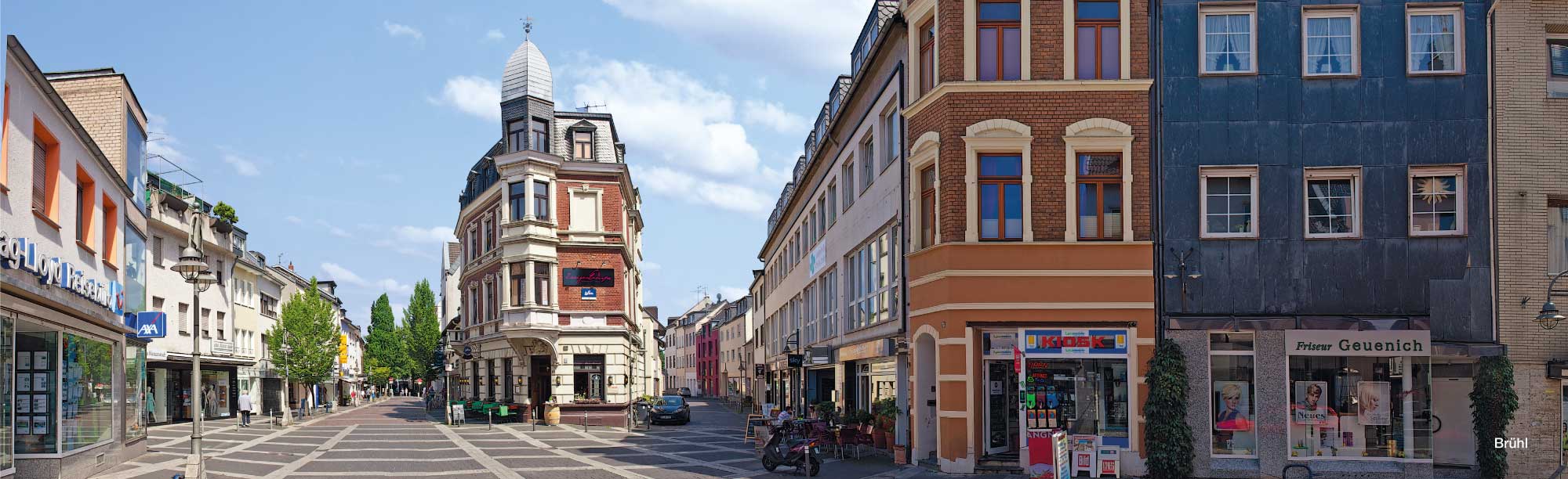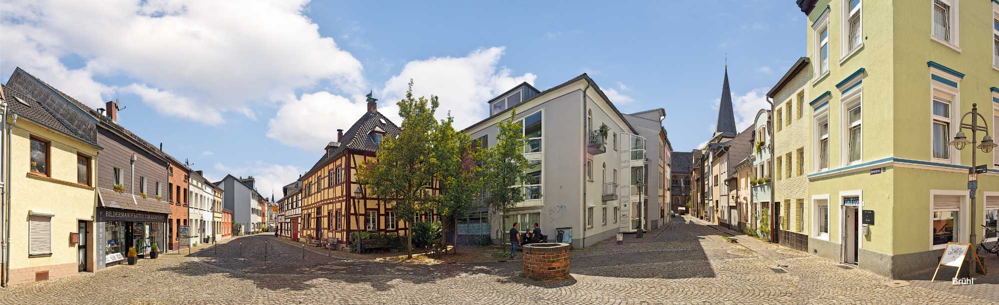 Das Brühler Schloss Augustusburg mit seiner barocken Pracht und dem Schlossgarten sind Motive, die in den Panoramen in ihrer breiten Pracht gezeigt werden. Weitere Motive sind das Jagdschloss Falkenlust, das Max Ernst Museum sowie Motive aus der pittoresken Innenstadt.