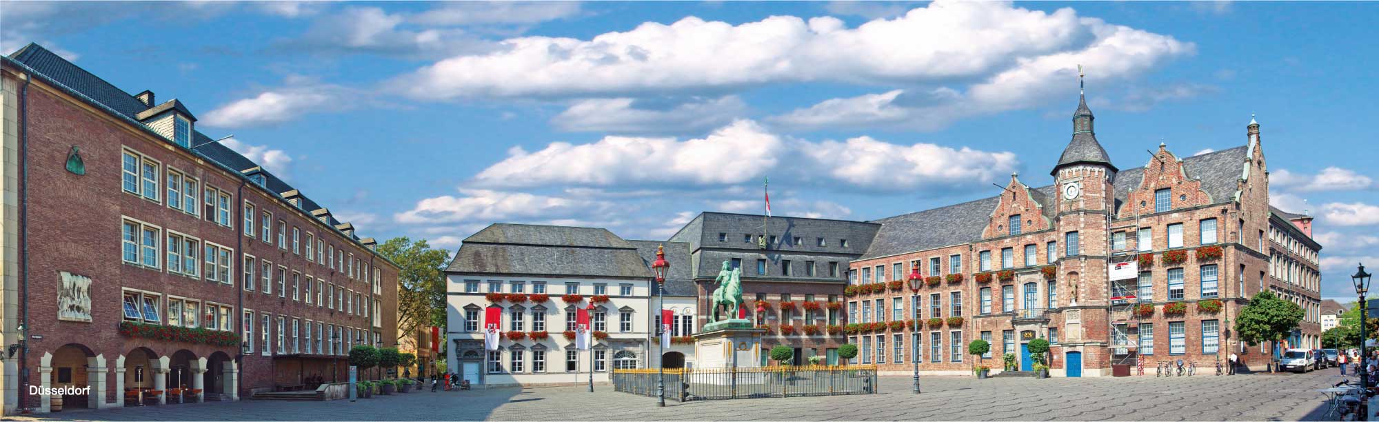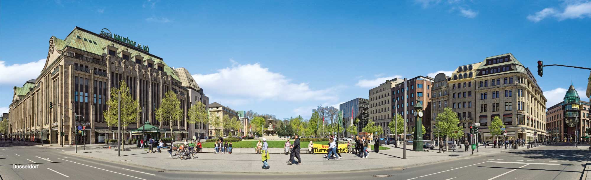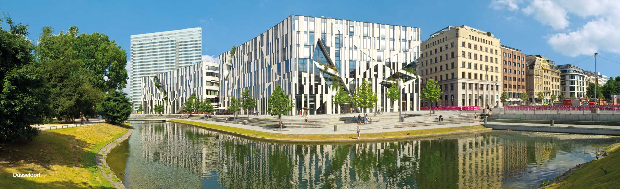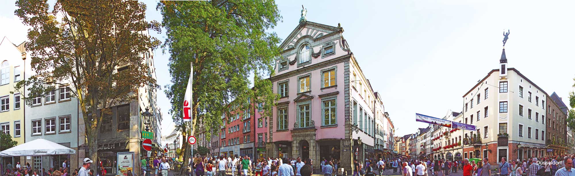 Der Medienhafen mit den umgebenden preisgekrönten modernen Gebäuden ist eines der Panoramen, mit einem Rundblick von mehr als 180 Grad. Weitere Düsseldorf Panoramen: die Altstadt, das Düsseldorfer Schauspielhaus, Rheinpromenade mit St. Lambertus, die Königsallee und viele mehr.