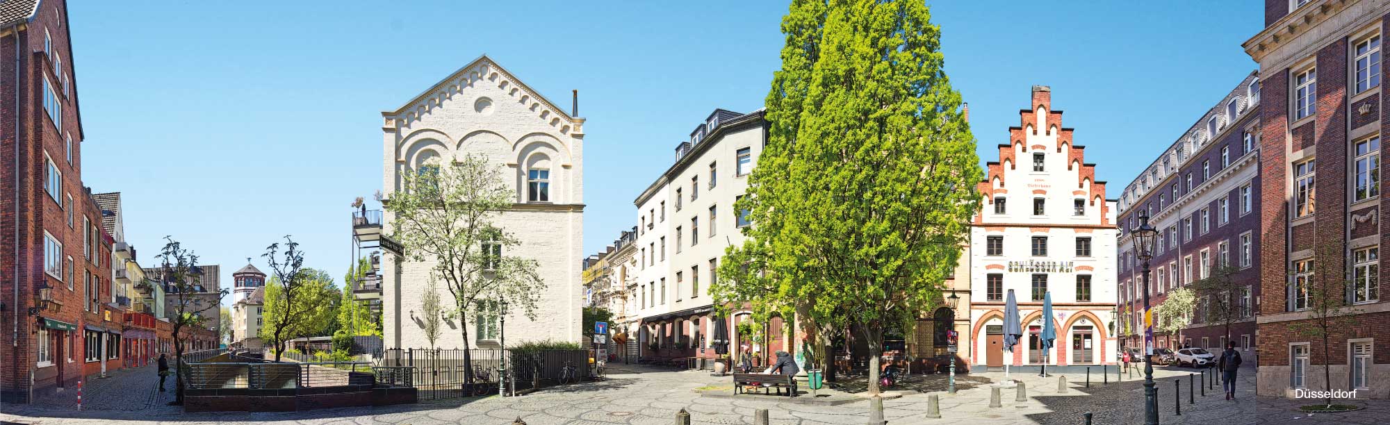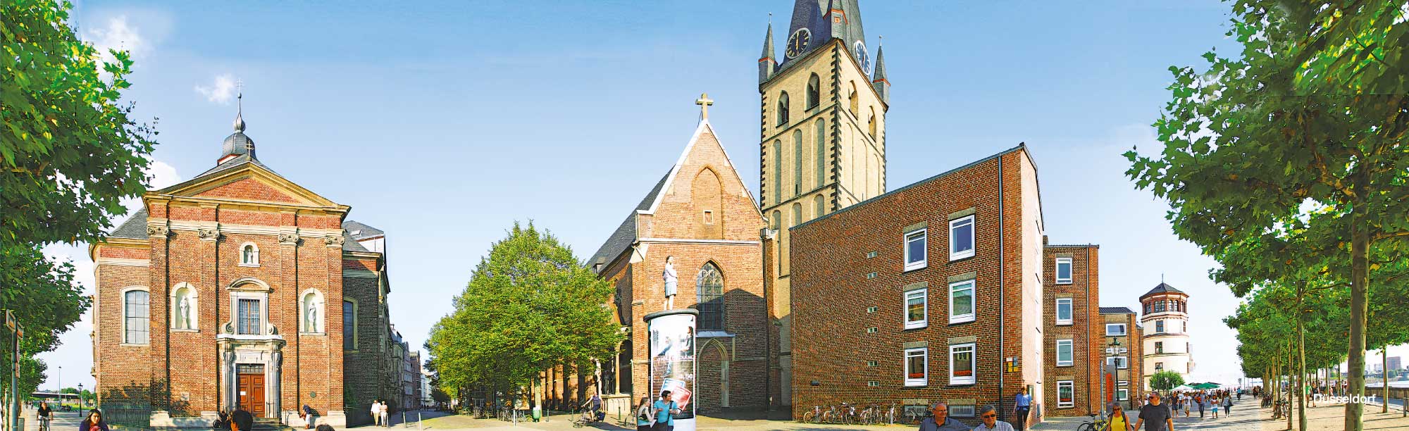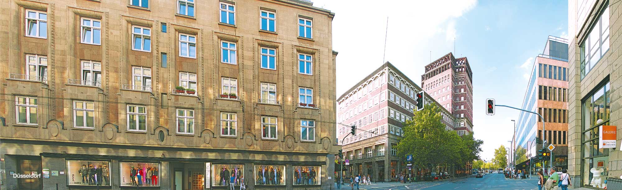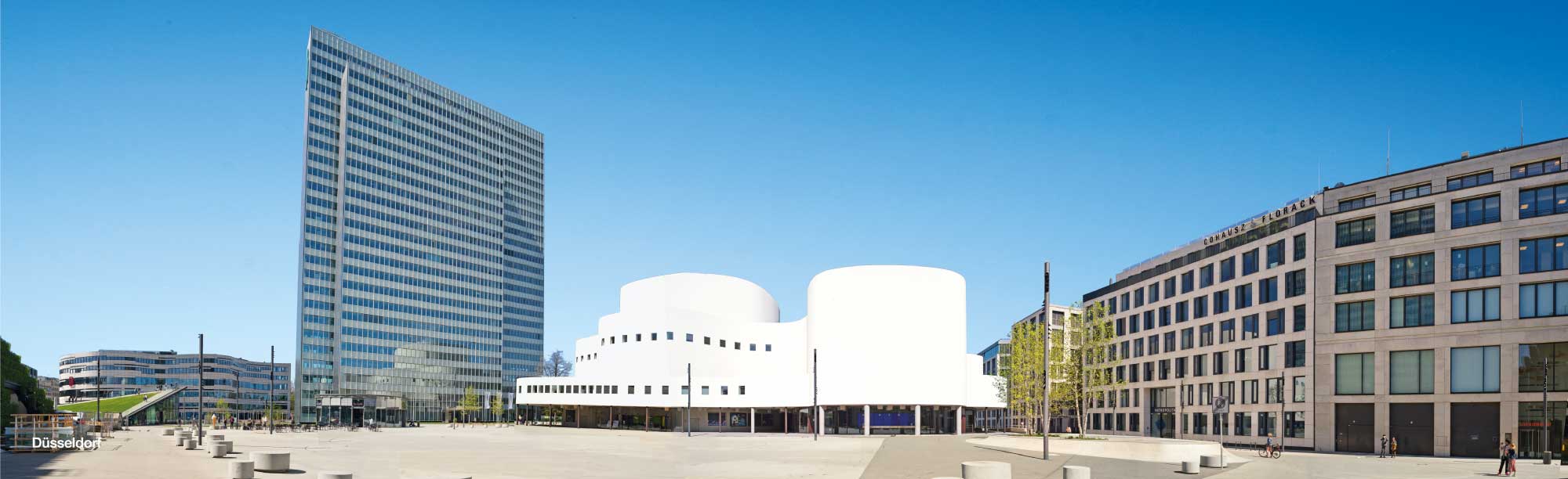 Der Medienhafen mit den umgebenden preisgekrönten modernen Gebäuden ist eines der Panoramen, mit einem Rundblick von mehr als 180 Grad. Weitere Düsseldorf Panoramen: die Altstadt, das Düsseldorfer Schauspielhaus, Rheinpromenade mit St. Lambertus, die Königsallee und viele mehr.