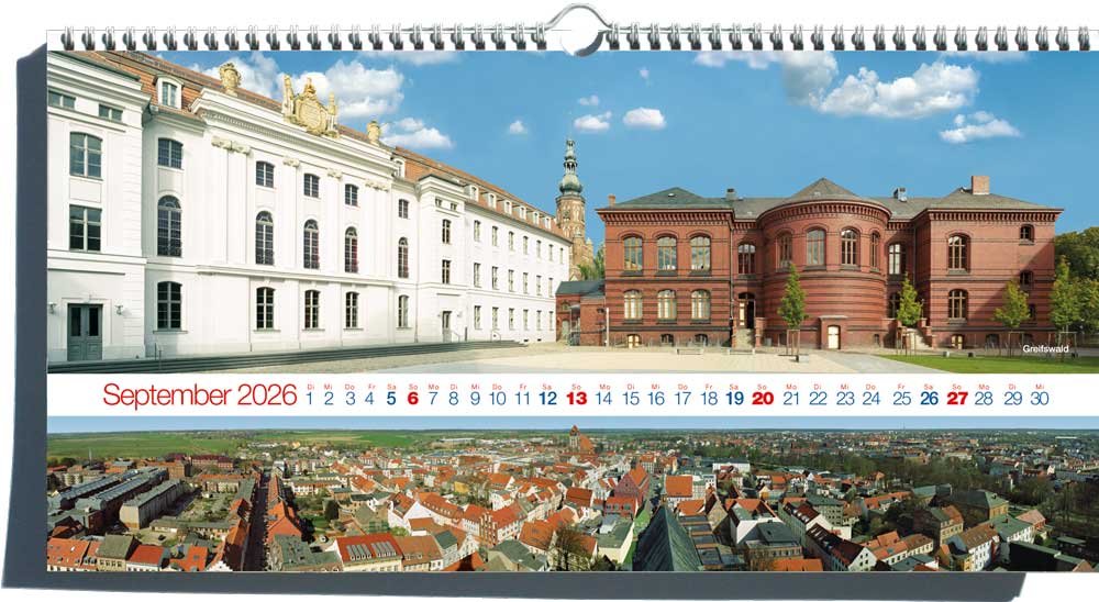 Mit zwei großformatigen Panoramafotos ist der Art-Kalender ein Blickfang auf jeder Wand.