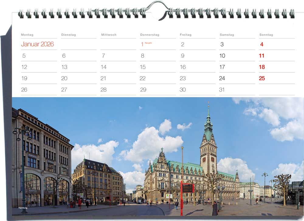 Mit zwei großformatigen Panoramafotos ist der Art-Kalender ein Blickfang auf jeder Wand.