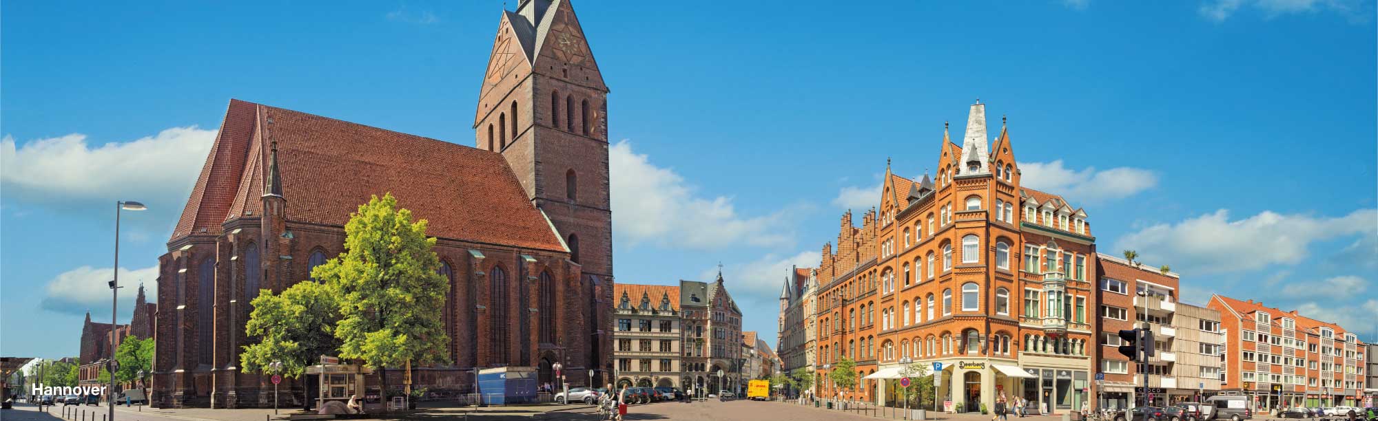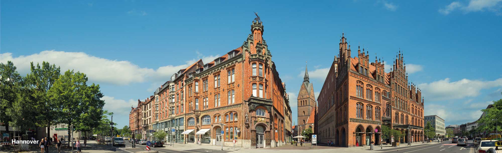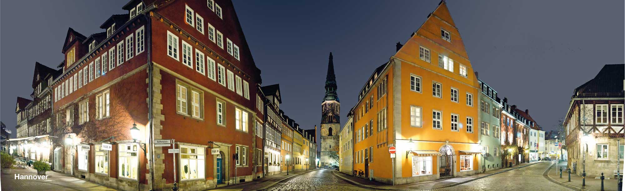 Die Marktkirche in Hannover mit den umgebenden Häusern ist eines der Panoramen mit einem Rundblick von mehr als 180 Grad. Ebenso dabei sind das Schloss Herrenhausen und Panoramen der Innenstadt, wie das Panorama der Kramerstraße und weitere.