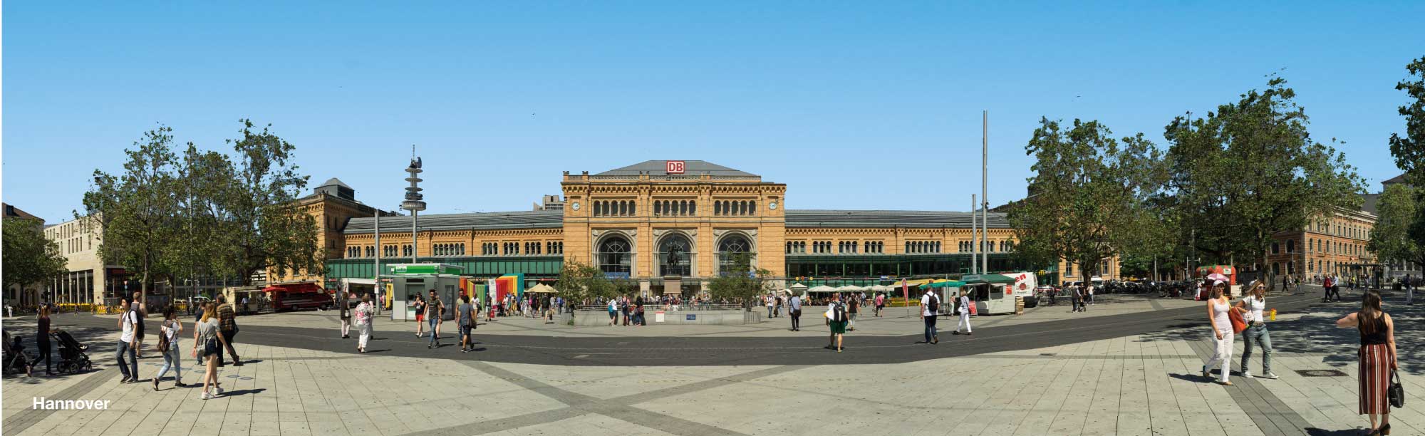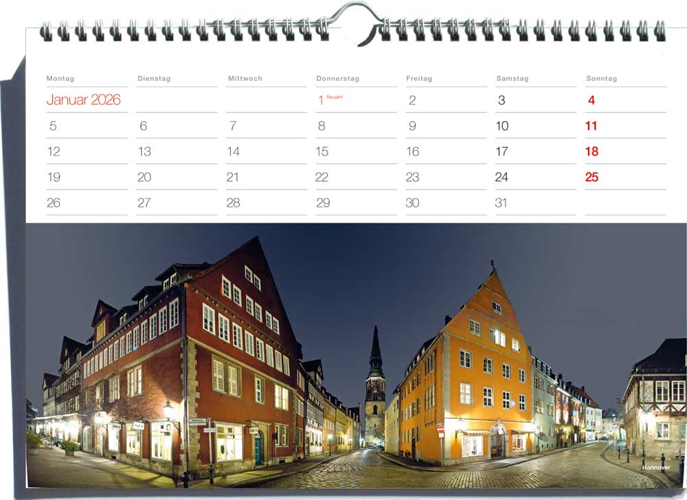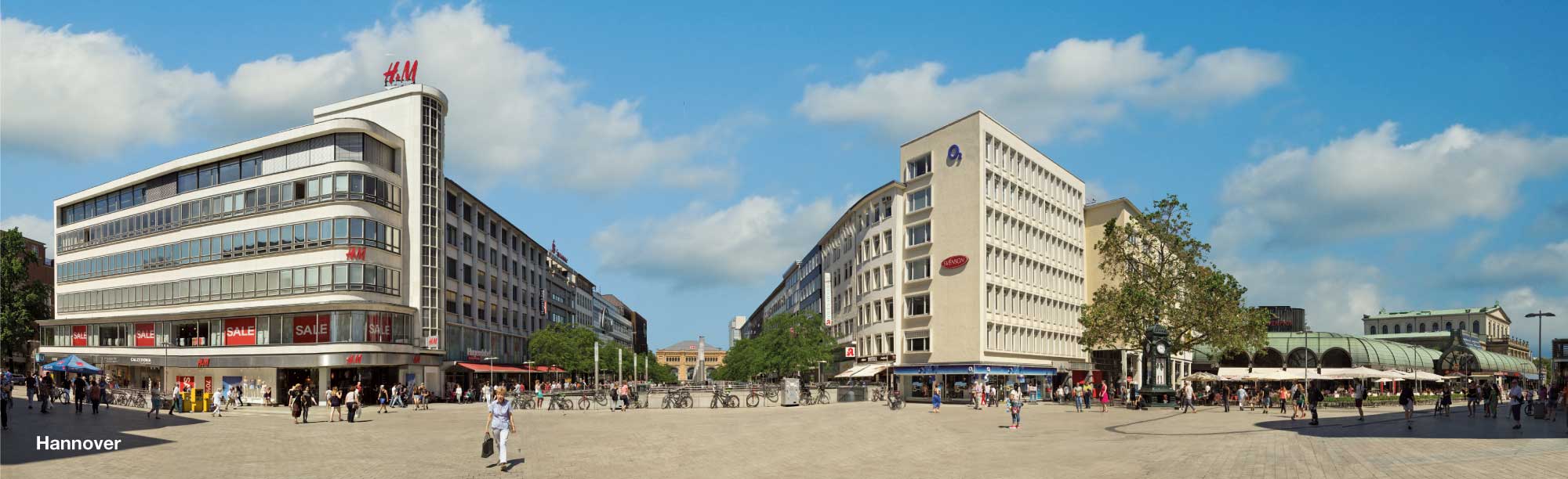 Die Marktkirche in Hannover mit den umgebenden Häusern ist eines der Panoramen mit einem Rundblick von mehr als 180 Grad. Ebenso dabei sind das Schloss Herrenhausen und Panoramen der Innenstadt, wie das Panorama der Kramerstraße und weitere.