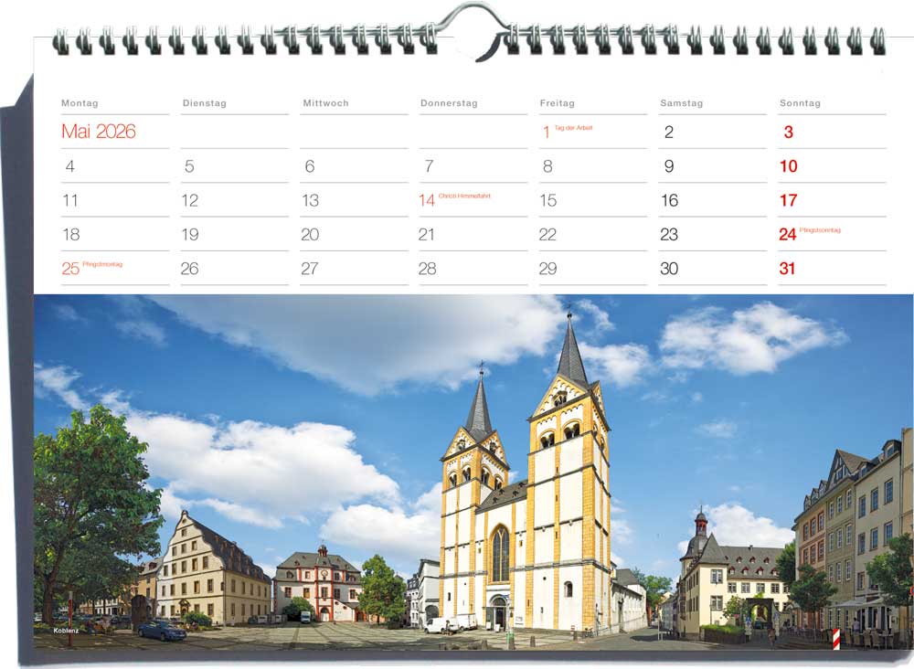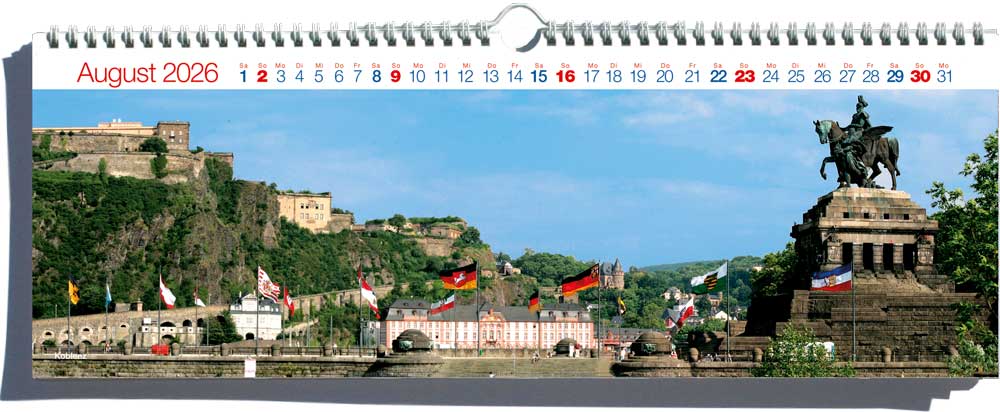 Der mittelgroße Wandkalender passt auf jede Wand. Er bietet viel Platz für die Panoramafotos und ein praktisches Kalendarium für Termineinträge. Optional: aufklapbare Jahresübersicht.