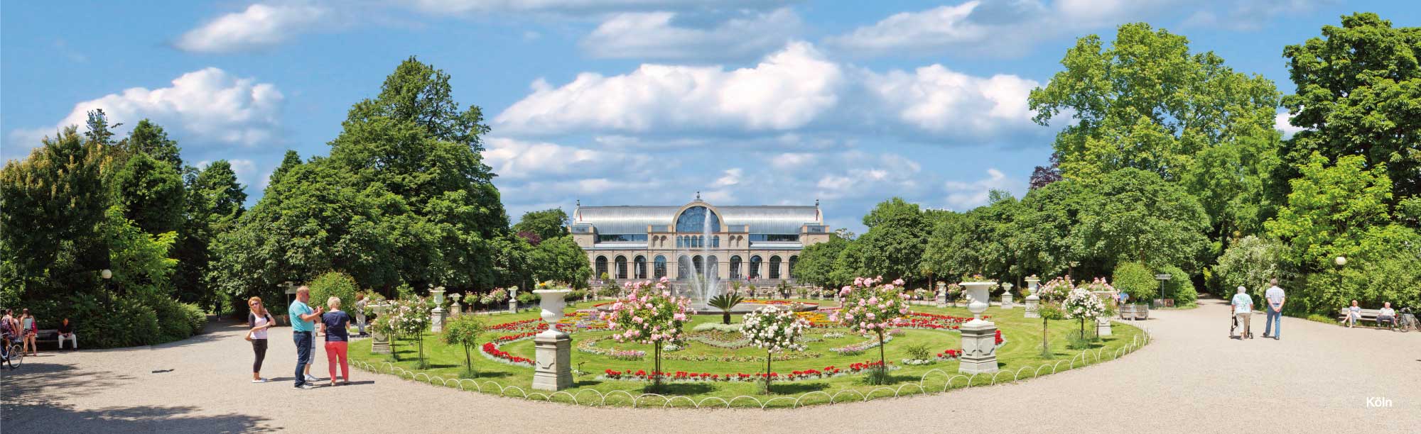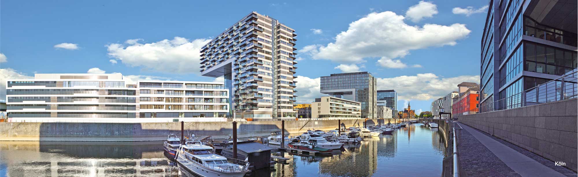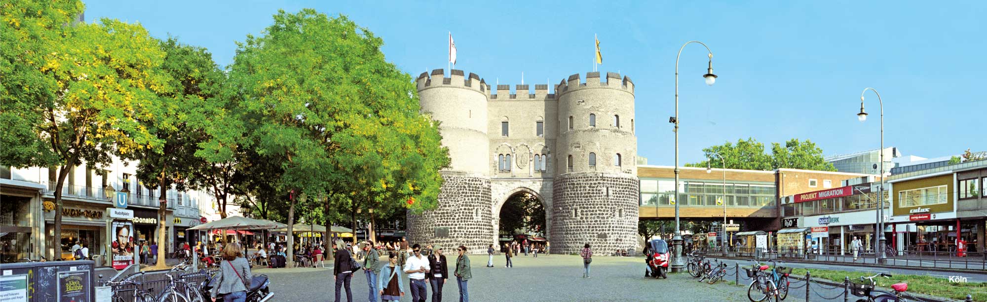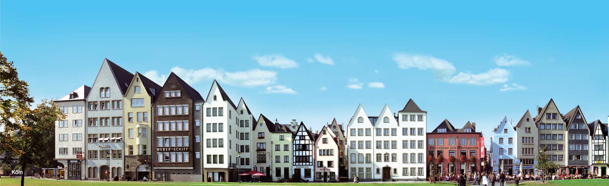 Der Kölner Dom mit dem Vorplatz, dem Römisch-Germanischen Museum rechts und dem Dom Hotel links: alles zusammen auf einem Panorama. Weitere Panoramen mit Rundumblick: der Rheinauhafen, das Rheinpanorama mit den Rheinbrücken und Altstadt, St. Martin mit Rheinpromenade.