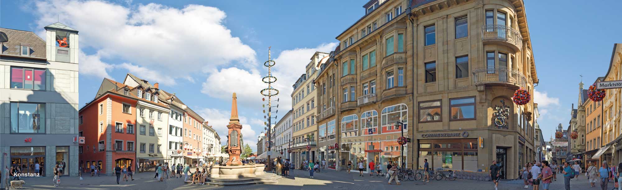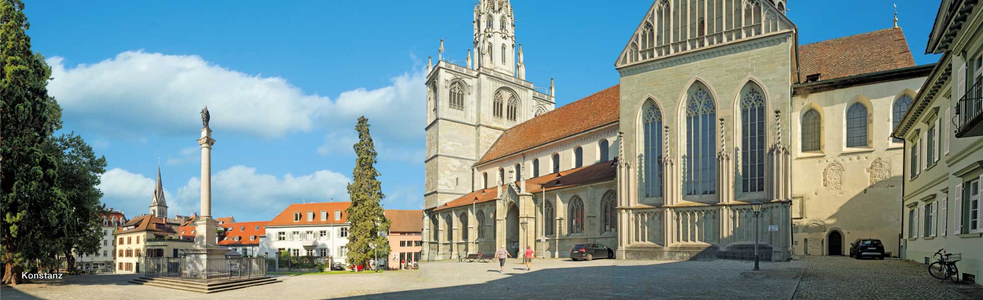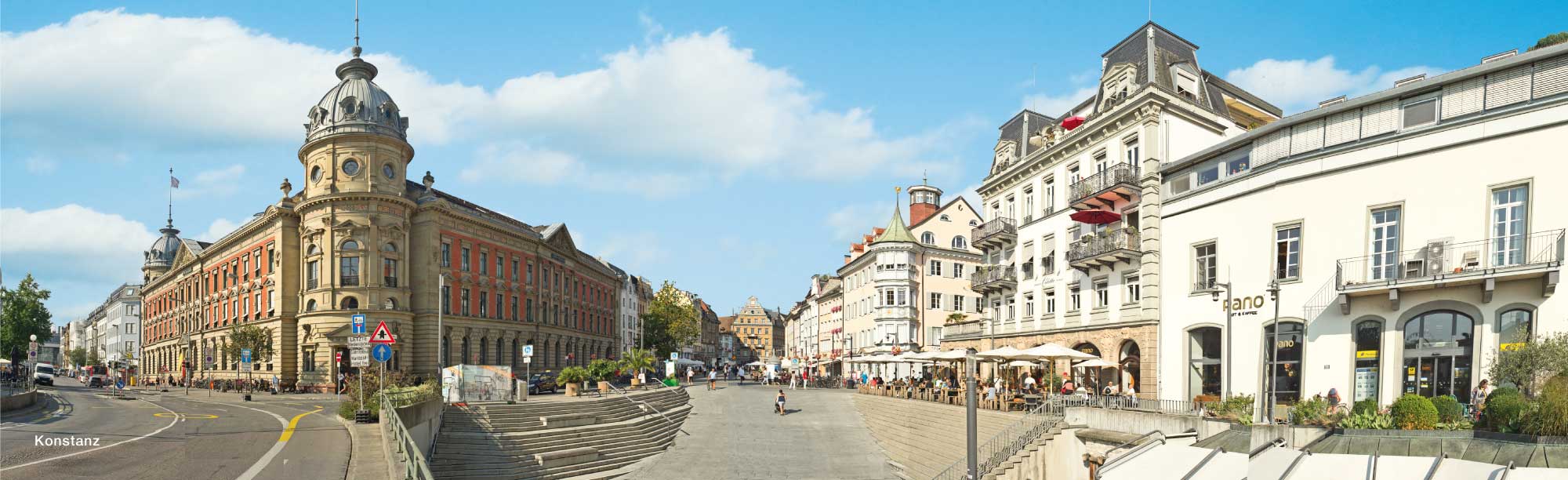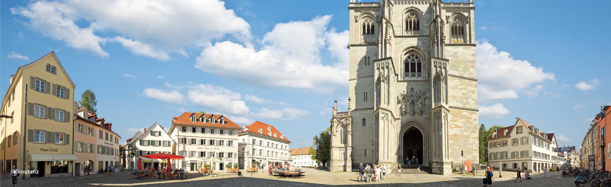 Bodenseeufer mit dem Konzilgebäude und umgebende Landschaft - das ist eines der Motive für das Panorama mit einem Rundblick von mehr als 180 Grad. Auch die Imperia an der Hafeneinfahrt am Bodensee ist im Panorama abgebildet. Dazu kommen Panoramen mit dem Konstanzer Münster und viele Panoramen aus der Altstadt von Konstanz, wie dem Schnetztor.