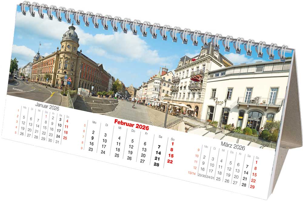 Mit 3-Monatsübersicht. Er passt auf jeden Schreibtisch, ob zu Hause oder im Büro.