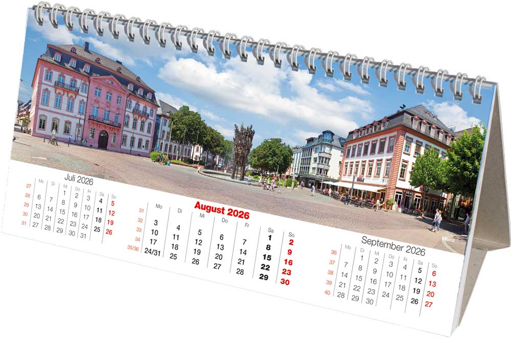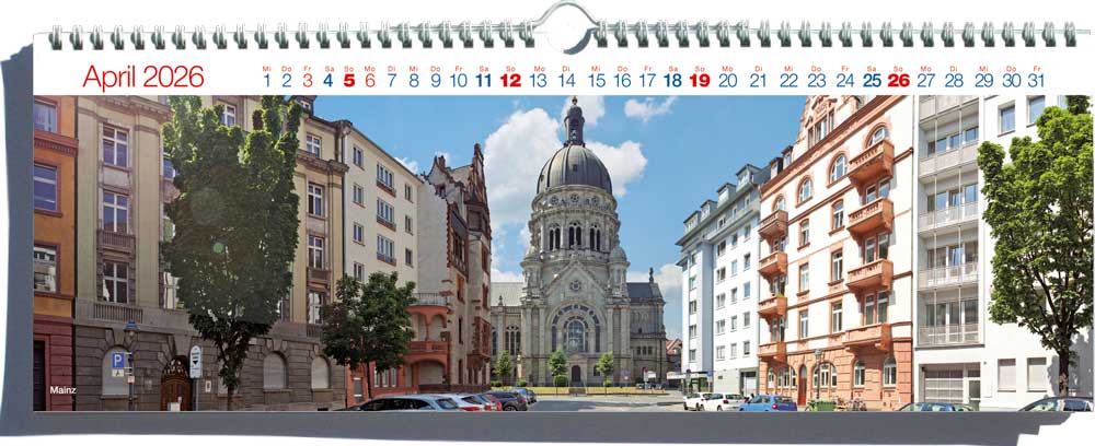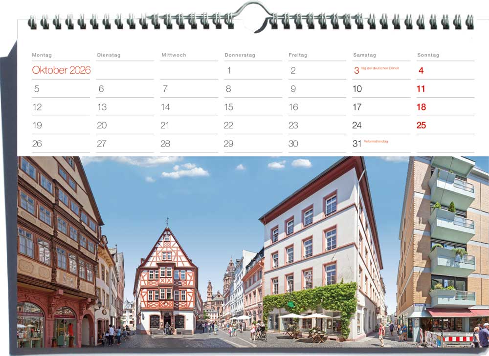 Der mittelgroße Wandkalender passt auf jede Wand. Er bietet viel Platz für die Panoramafotos und ein praktisches Kalendarium für Termineinträge. Optional: aufklapbare Jahresübersicht.