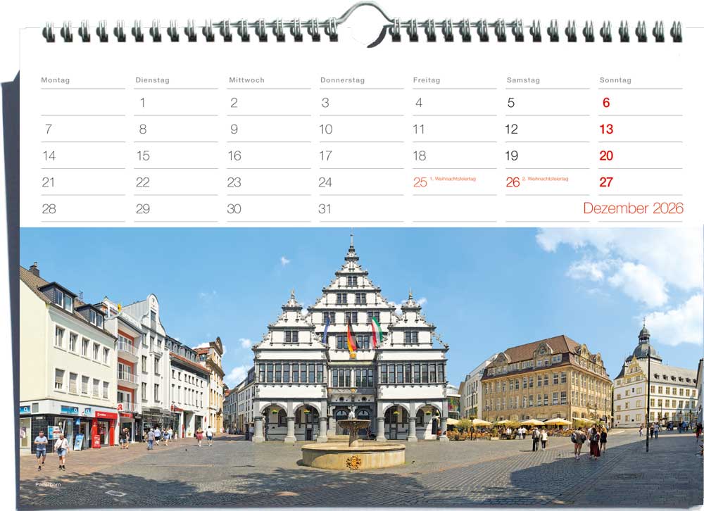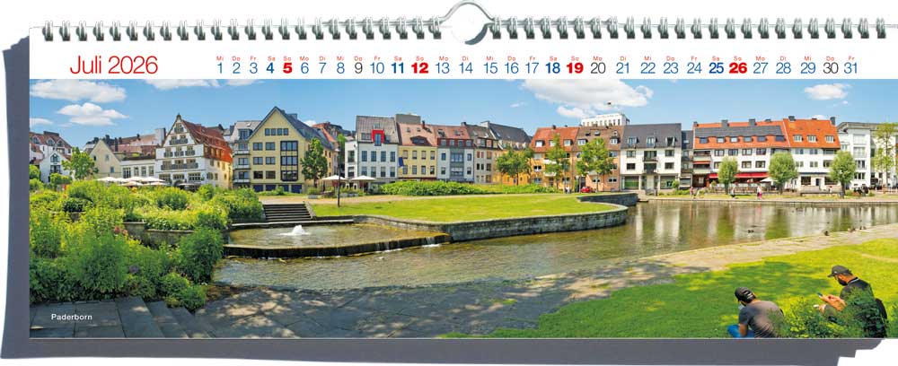 Der mittelgroße Wandkalender passt auf jede Wand. Er bietet viel Platz für die Panoramafotos und ein praktisches Kalendarium für Termineinträge. Optional: aufklapbare Jahresübersicht.