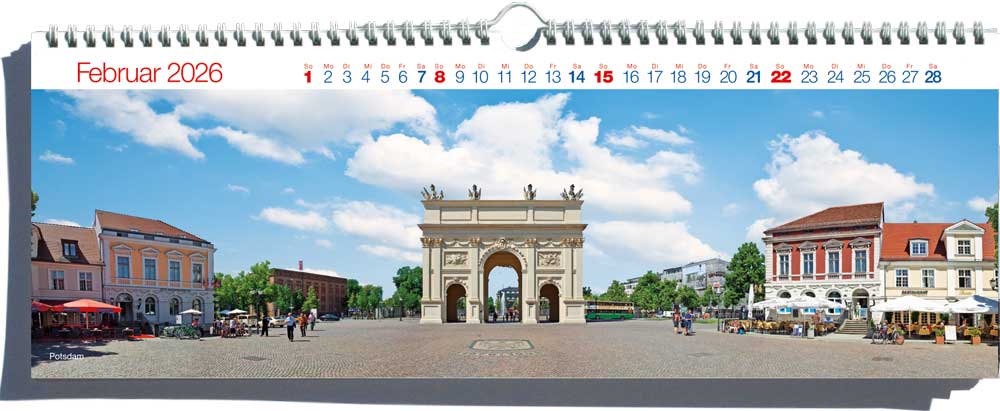 Der mittelgroße Wandkalender passt auf jede Wand. Er bietet viel Platz für die Panoramafotos und ein praktisches Kalendarium für Termineinträge. Optional: aufklapbare Jahresübersicht.