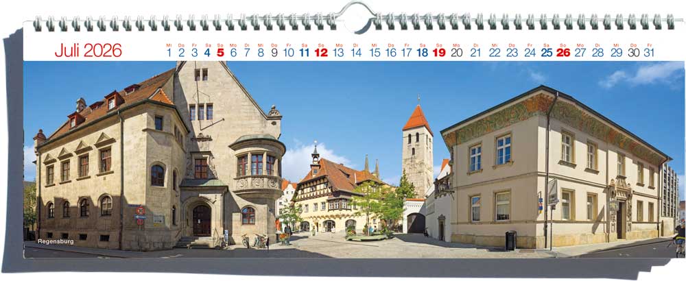 Der mittelgroße Wandkalender passt auf jede Wand. Er bietet viel Platz für die Panoramafotos und ein praktisches Kalendarium für Termineinträge. Optional: aufklapbare Jahresübersicht.