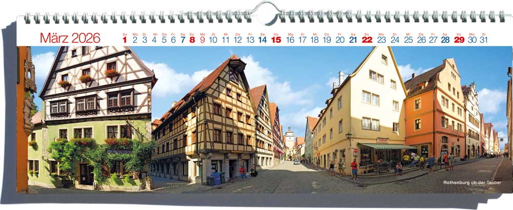 Der mittelgroße Wandkalender passt auf jede Wand. Er bietet viel Platz für die Panoramafotos und ein praktisches Kalendarium für Termineinträge. Optional: aufklapbare Jahresübersicht.