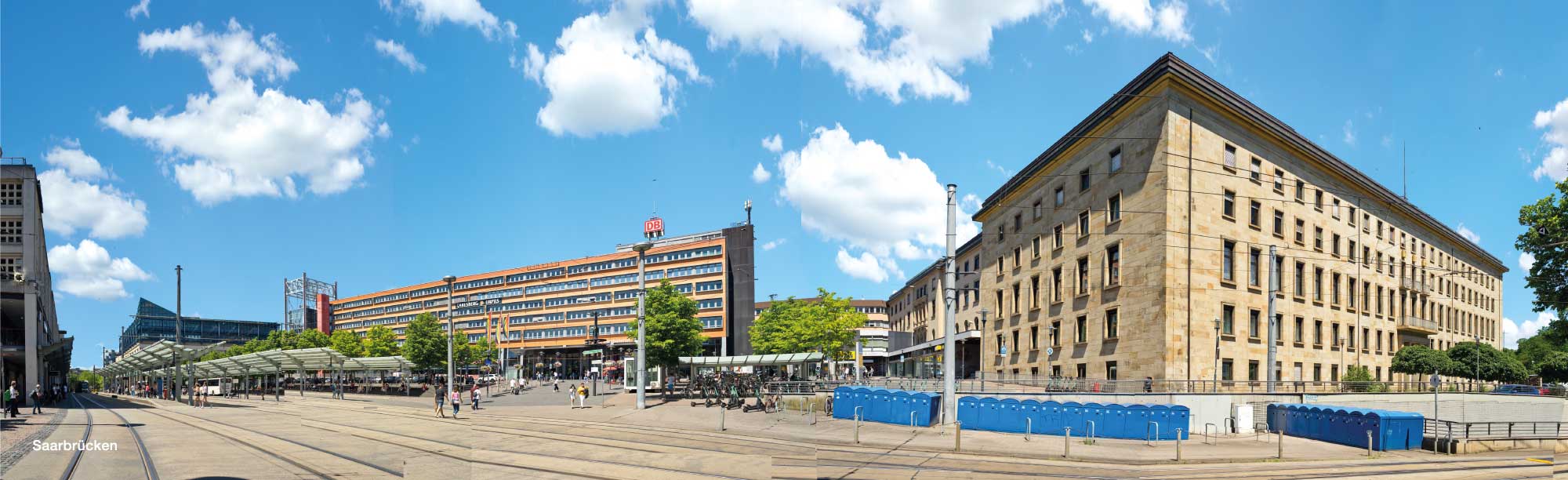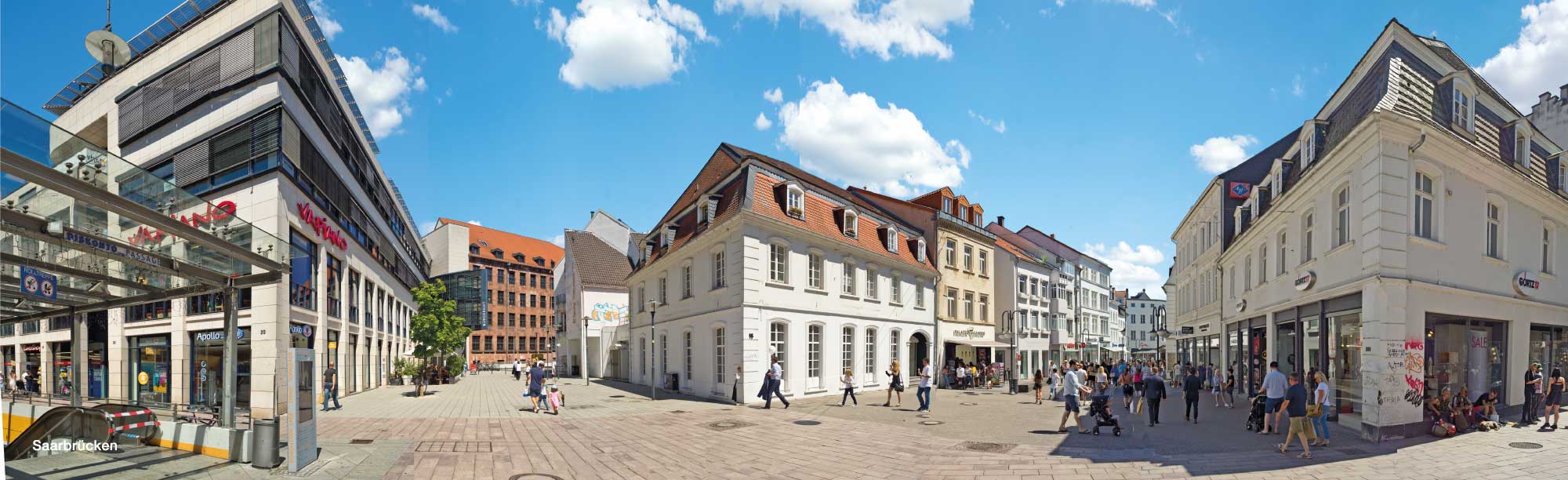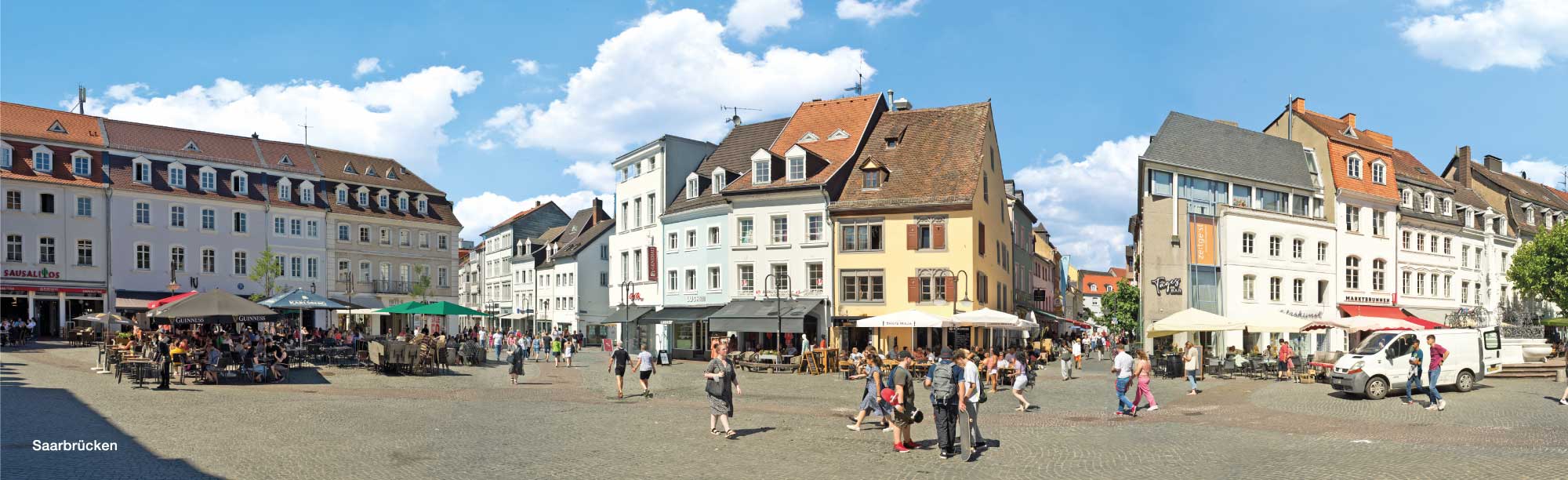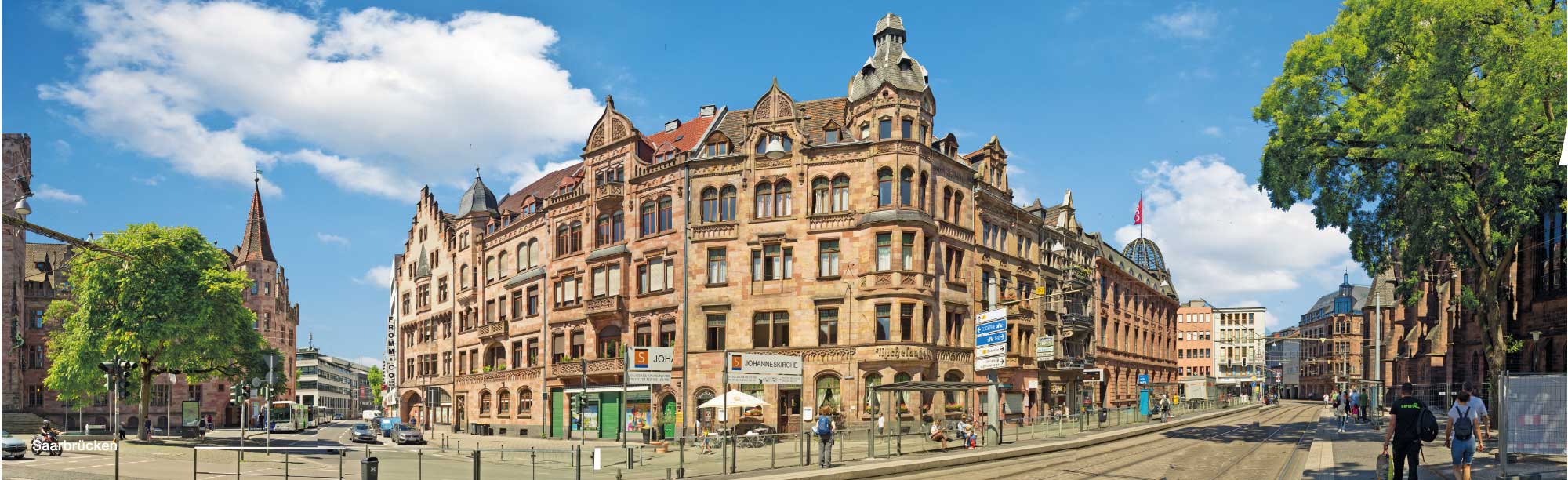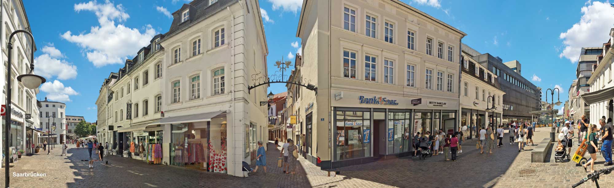 Die Ludwigskirche in Alt-Saarbrücken ist eines der Panoramen mit einem Blickwinkel von mehr als 180 Grad. Weitere Panoramen von Saarbrücken: der Rathausplatz, das prächtige Schloss, die Basilika St. Johann, die Fröschengasse und viele andere.