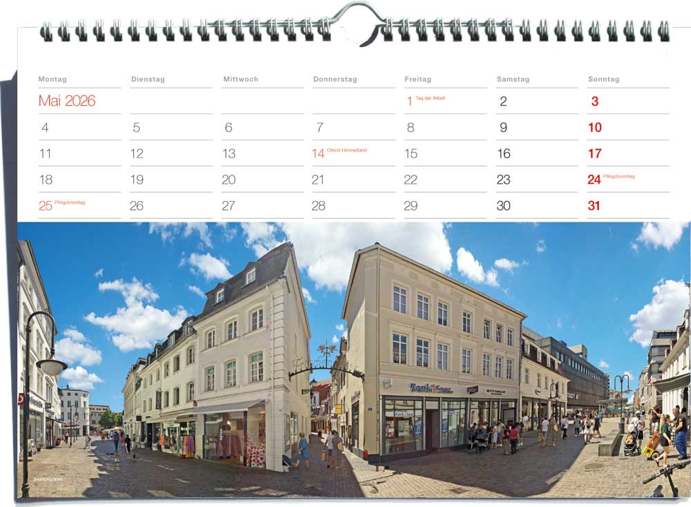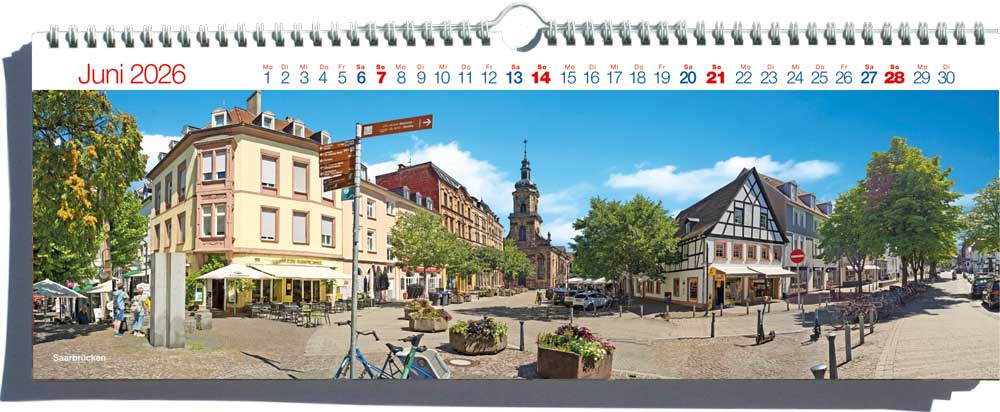 Der mittelgroße Wandkalender passt auf jede Wand. Er bietet viel Platz für die Panoramafotos und ein praktisches Kalendarium für Termineinträge. Optional: aufklapbare Jahresübersicht.