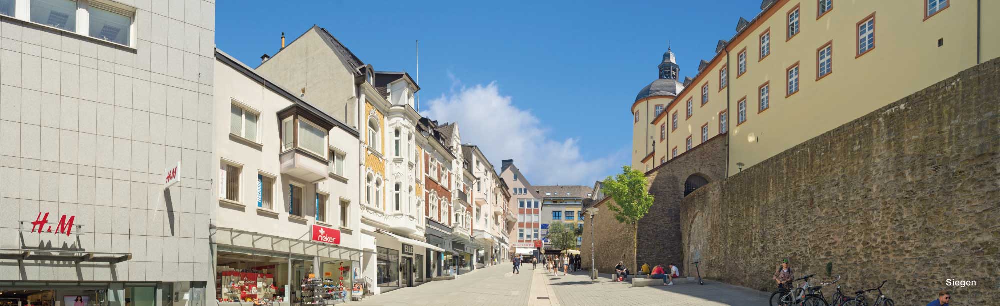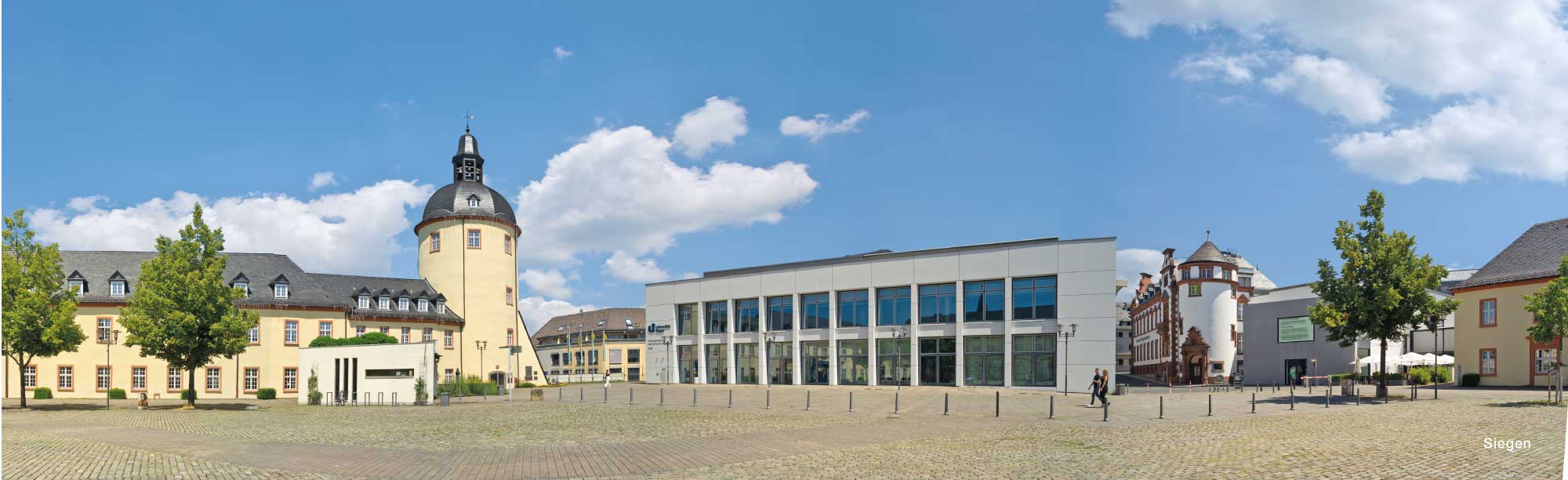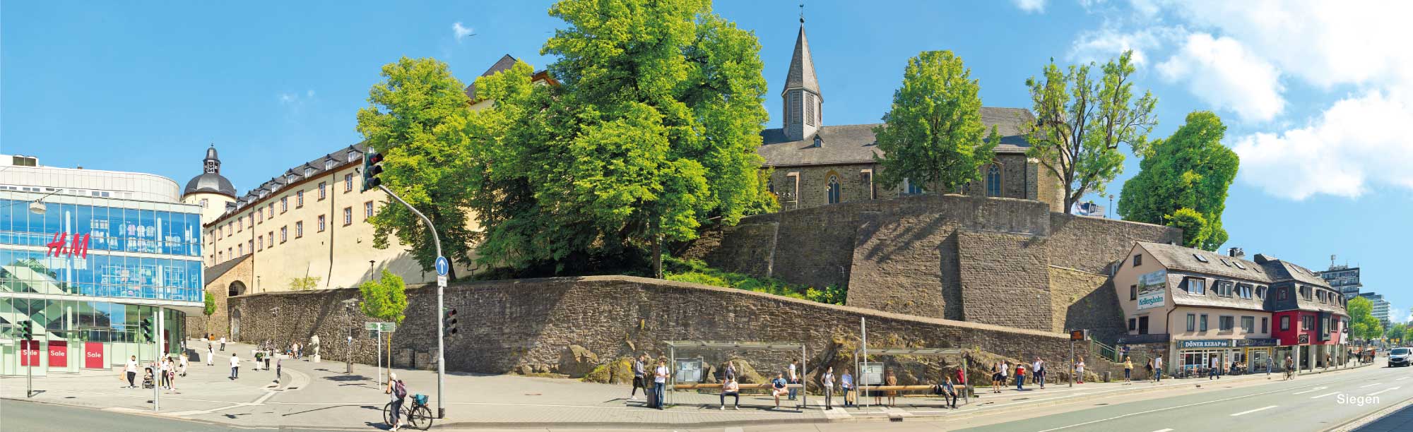 Das Obere und das untere Schloss mit der jeweiligen Umgebung werden in Panoramen mit einem Blickwinkel von mehr als 180 Grad dargestellt. Weitere Panoramen von Siegen: das Krönchencenter, Siegufer mit angrenzenden Gebäuden, das Kölner Tor und viele Altstadtpanoramen.