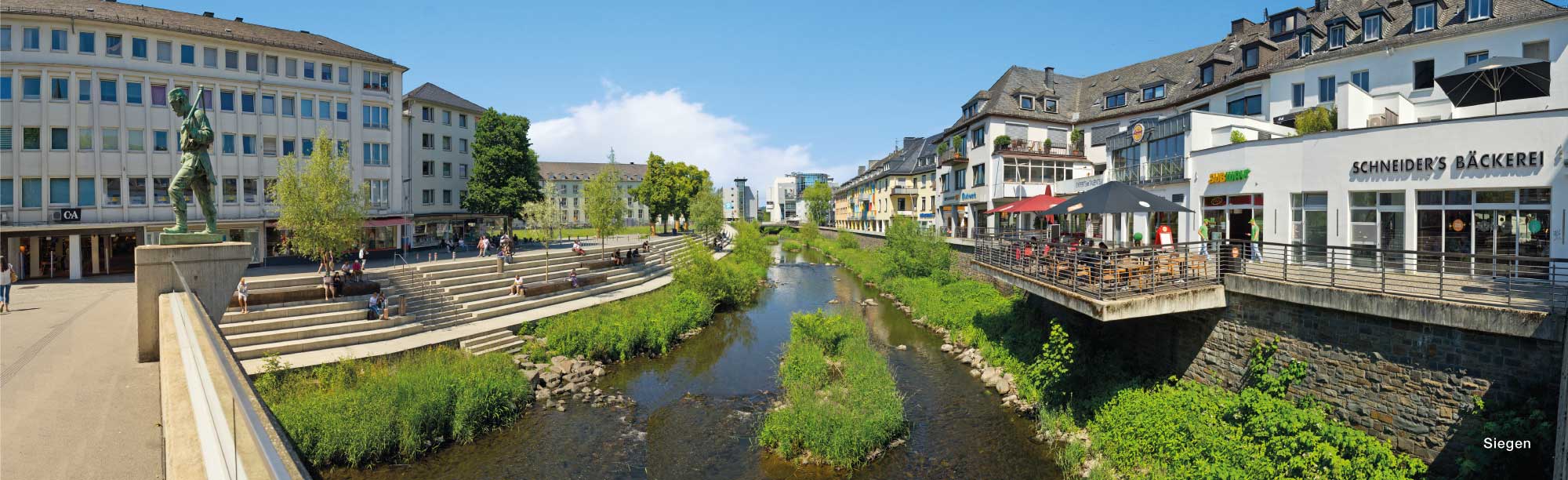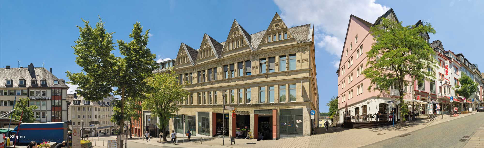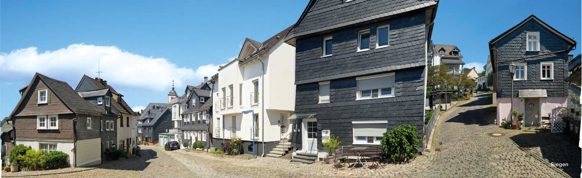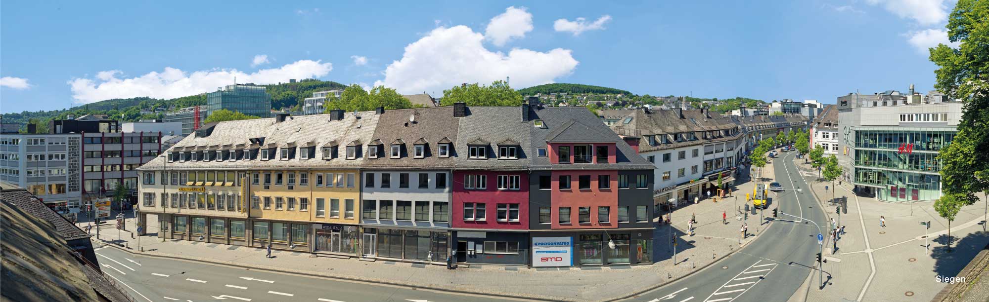 Das Obere und das untere Schloss mit der jeweiligen Umgebung werden in Panoramen mit einem Blickwinkel von mehr als 180 Grad dargestellt. Weitere Panoramen von Siegen: das Krönchencenter, Siegufer mit angrenzenden Gebäuden, das Kölner Tor und viele Altstadtpanoramen.